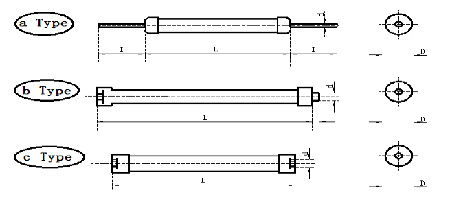 Type | Rated power(W) | Structure form | Dimensions(mm) | Resistance range(Ω) |